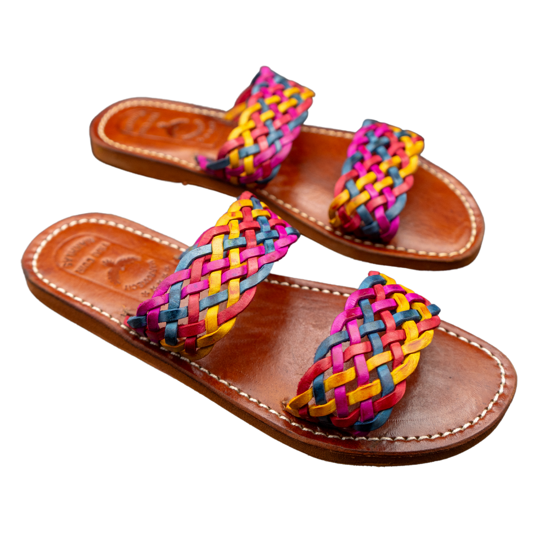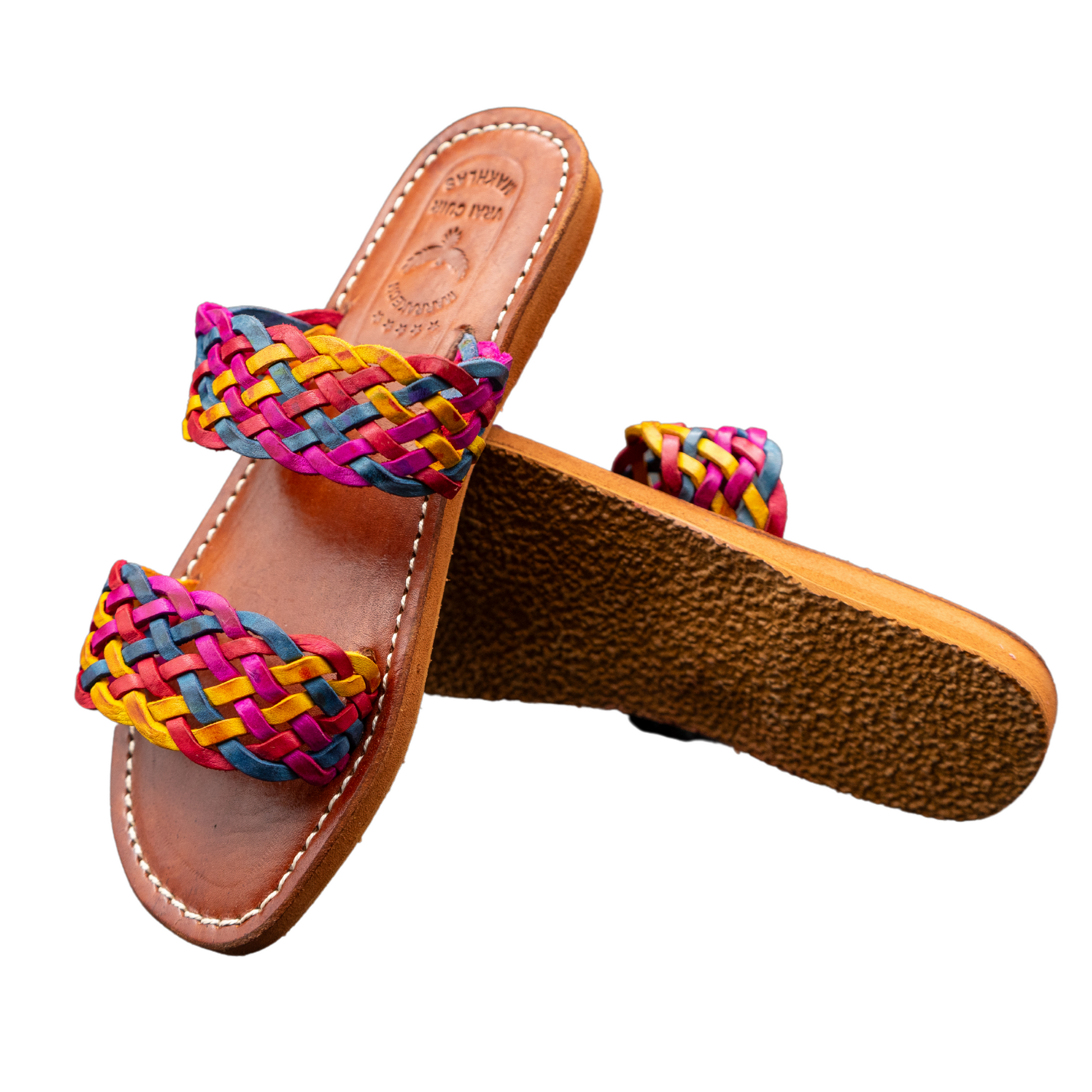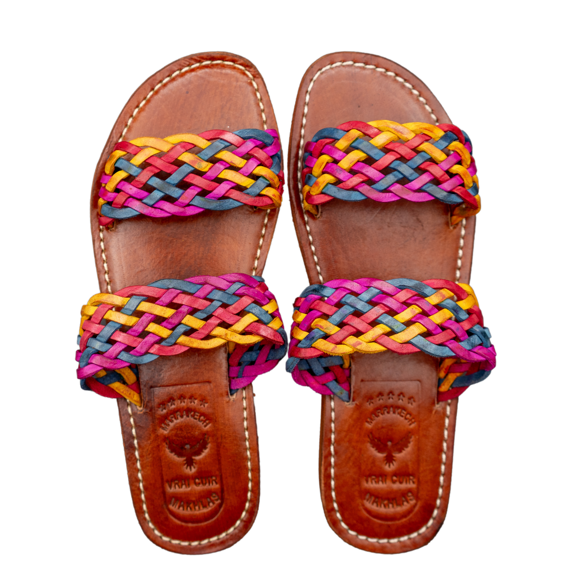 Sandales plates élégantes en cuir, colorées, à deux sangles tressées, à la mode.