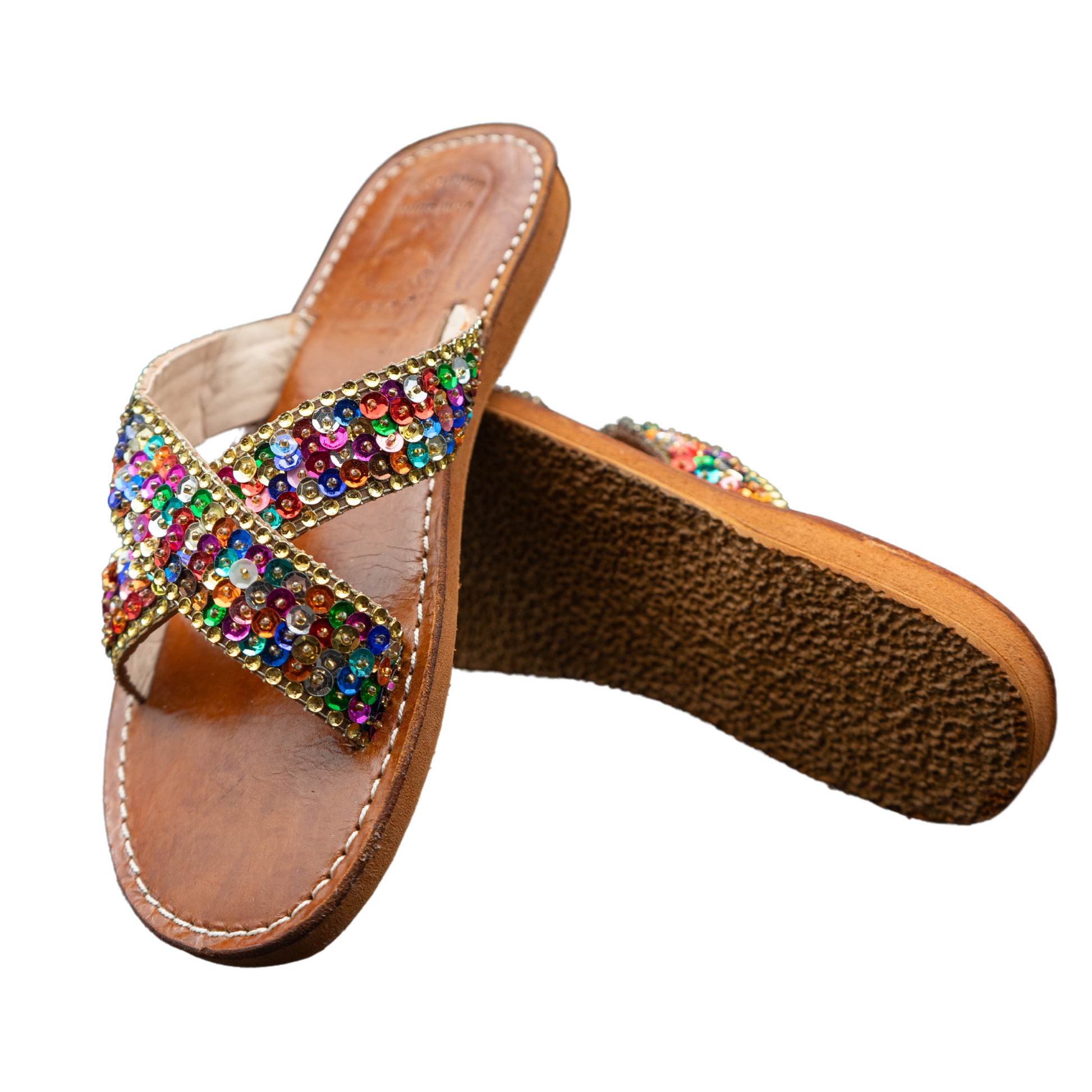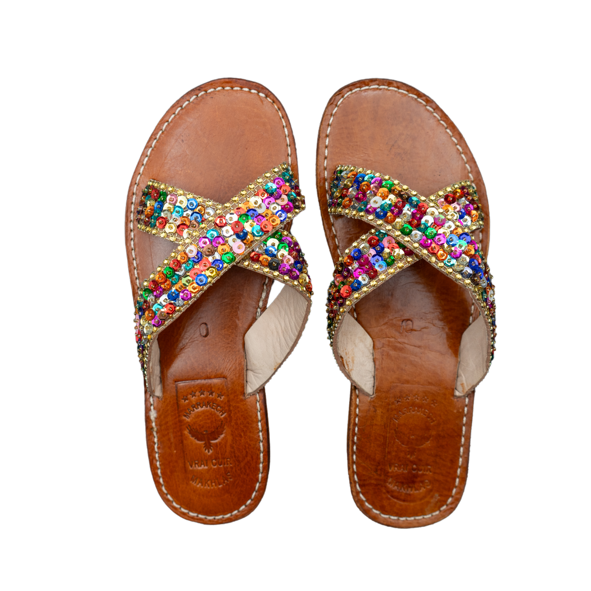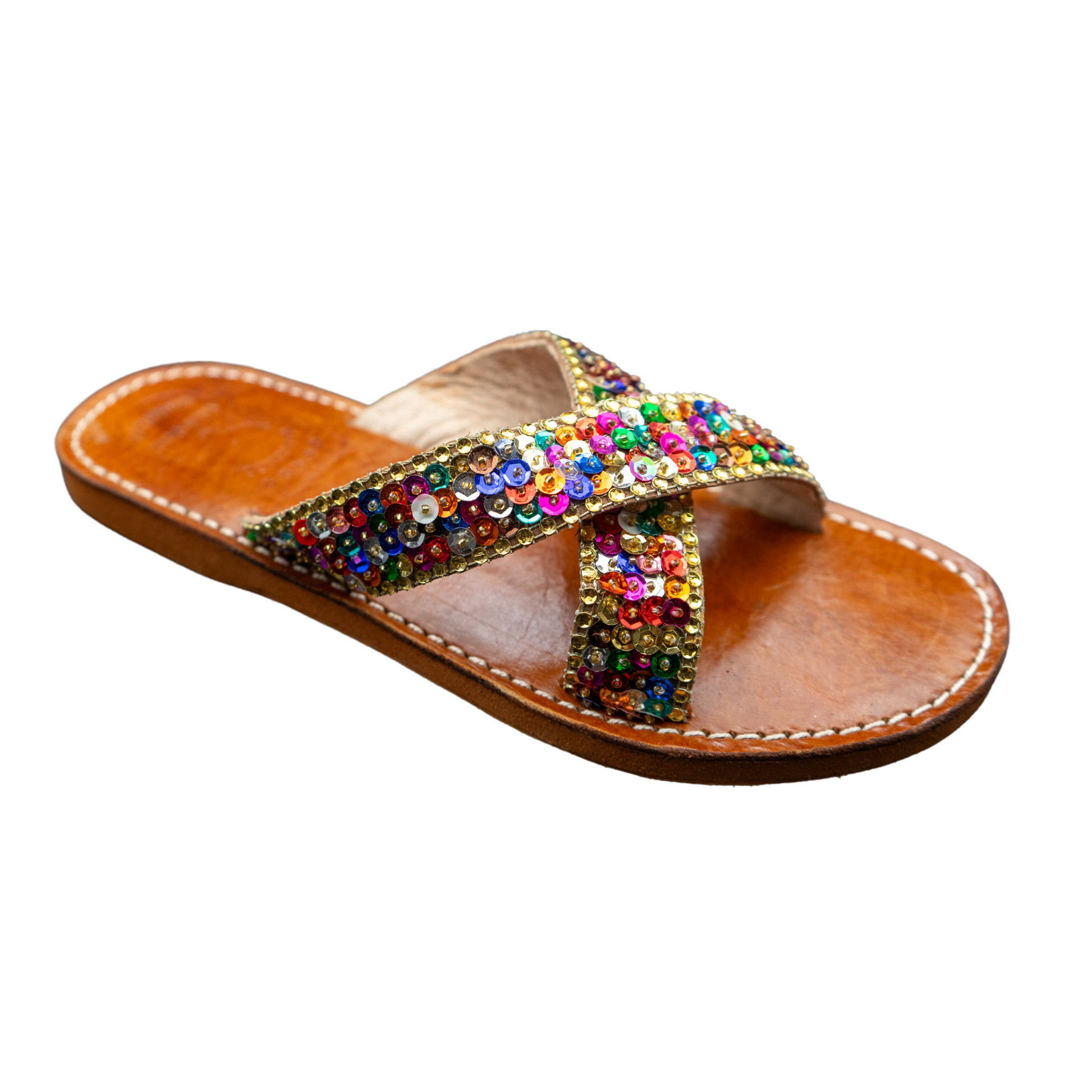 Mules femmes en cuir à enfiler avec brides croisées sur l’avant, chic et glamour avec strass.